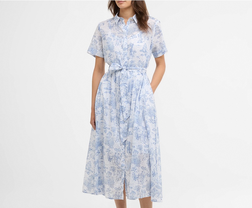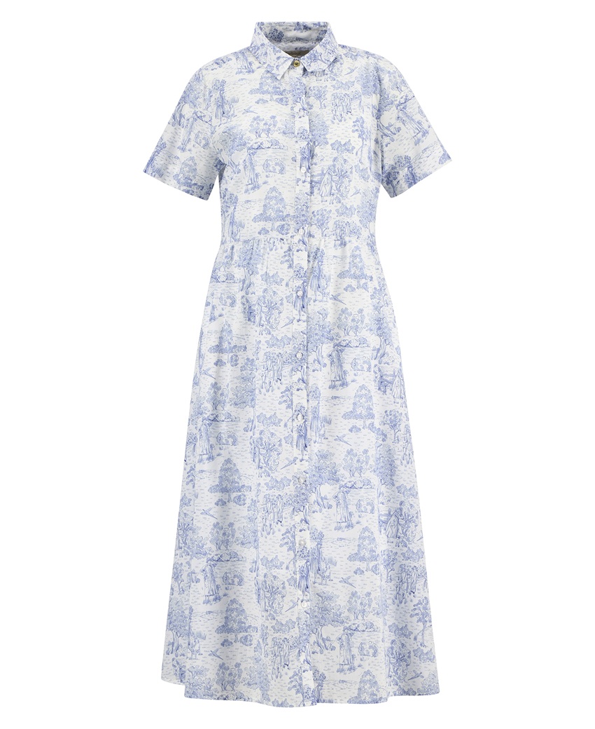 The Barbour Wisteria Midi Dress is a relaxed fit style crafted from a lightweight 100% cotton with a toile de jour print.